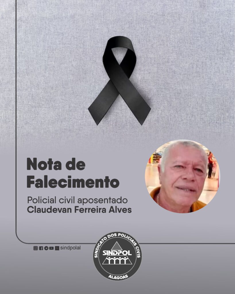 É com profundo pesar que o Sindicato dos Policiais Civis de Alagoas (Sindpol) comunica o falecimento do policial civil aposentado Claudevan Ferreira Alves, aos 70 anos, ocorrido na noite desta segunda-feira (06/04), em decorrência de um ataque cardíaco.