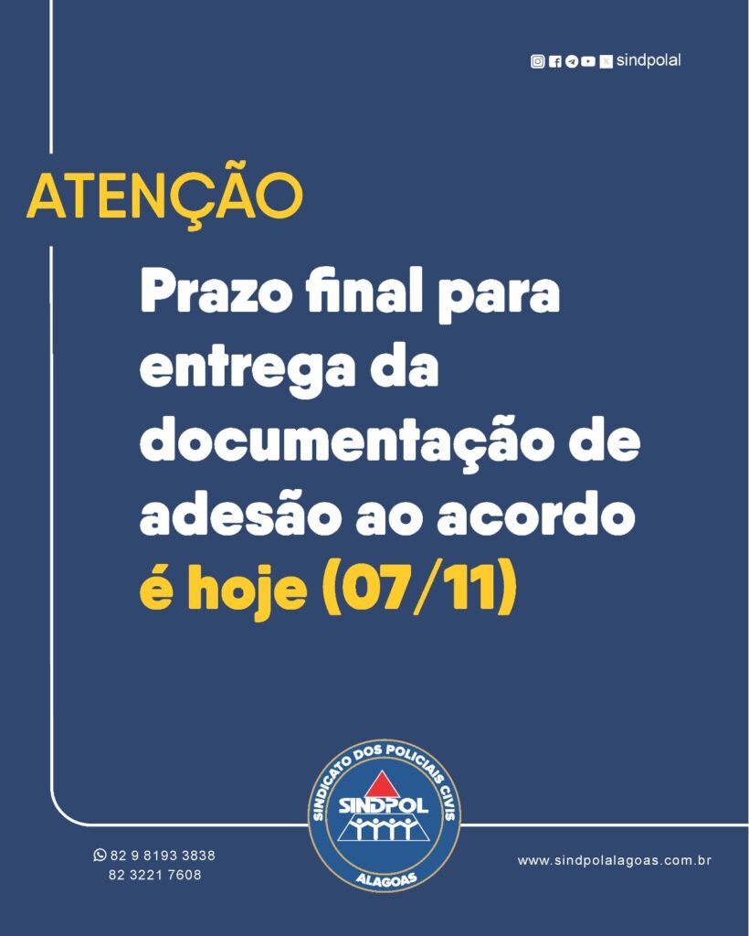 Prazo final para entrega da documentação de adesão ao acordo é hoje (07/11)