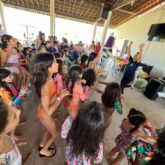 A animação da festa ficou por conta do grupo Doce Mel, que promoveu brincadeiras e atividades interativas com as crianças.