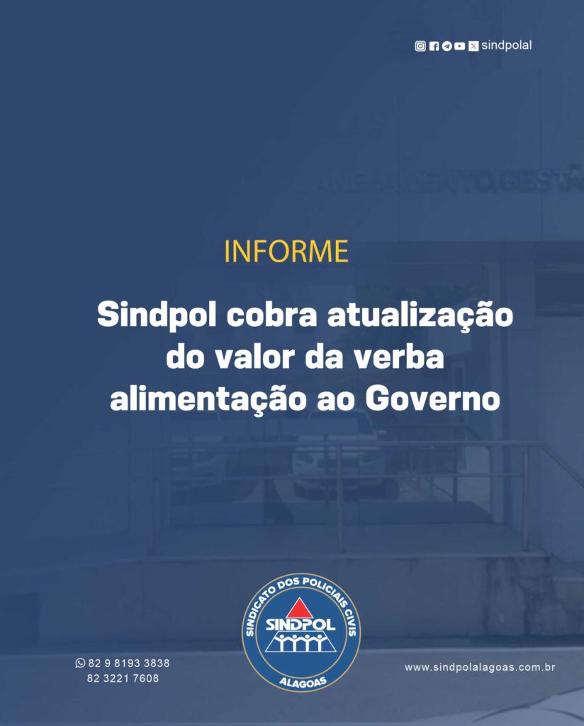 O Sindicato dos Policiais Civis de Alagoas (Sindpol) intensificou a cobrança pela atualização do valor da verba de alimentação da categoria, que está há cinco anos sem reajuste.