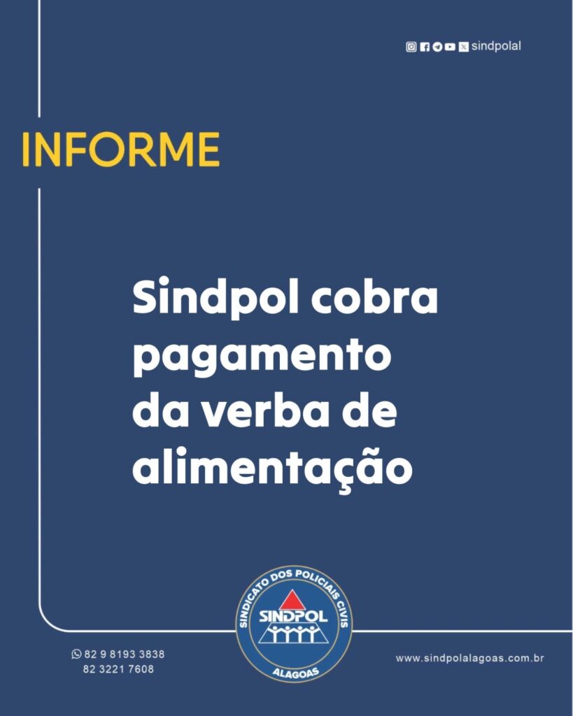 O Sindpol reforça que o papel da entidade é atuar na cobrança do pagamento da verba de alimentação, esclarecendo que a responsabilidade por esse pagamento é da Delegacia Geral.
