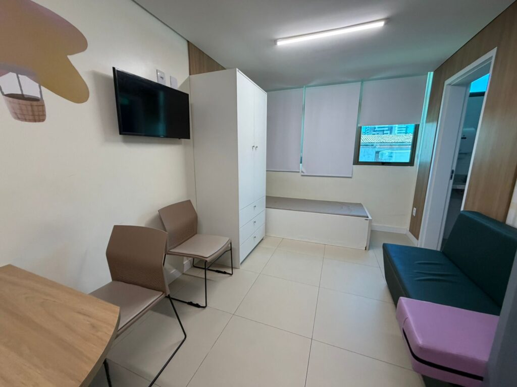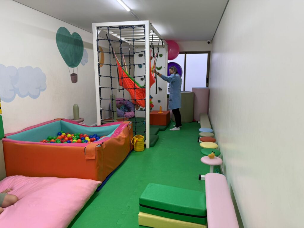 A unidade conta com um espaço físico planejado detalhadamente para o desenvolvimento das terapias especiais. Desde a entrada, detalhes foram pensados para acolher o paciente, como as portas das salas que possuem uma versão em miniatura e um “olho mágico invertido”, permitindo que a criança visualize, de forma lúdica, o ambiente terapêutico antes mesmo de entrar.